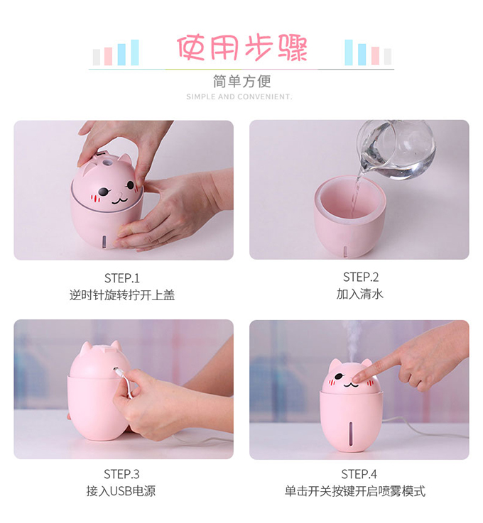 買了好久了,用了幾次覺(jué)得挺好的,性比價(jià)高,特別萌,主要是真的沒(méi)有聲音,晚上睡覺(jué)特別安靜,而且噴霧特別細(xì)膩