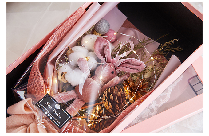 設(shè)計(jì)不錯(cuò),送閨蜜的生日禮物,她喜歡干花,收到這個(gè)應(yīng)該會(huì)很開心吧,粉粉的小兔子也很萌