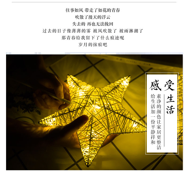 燈光從藤條里透出來(lái),照在天花板上,斑斑駁駁,有點(diǎn)星空的感覺(jué)。簡(jiǎn)直就是一個(gè)提升生活幸福感的神器,好評(píng)。