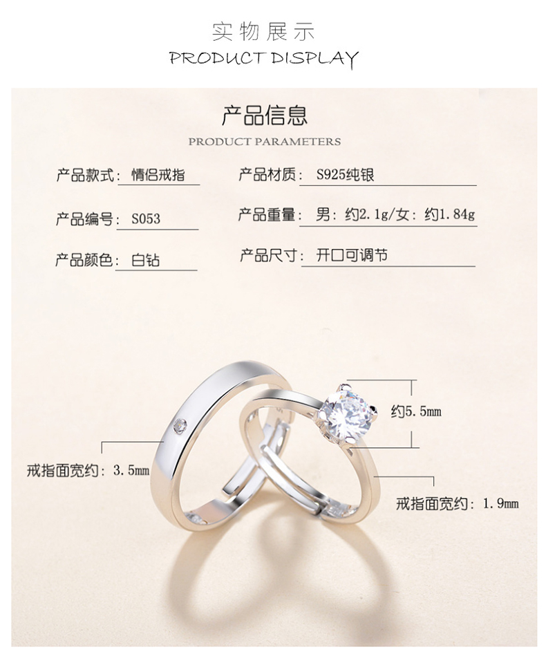 半生溫柔·愛的表達(dá)520純銀鑲鉆對(duì)戒