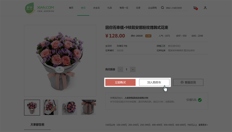 進(jìn)入網(wǎng)站,選擇您喜歡的商品,點(diǎn)擊商品的圖片或者名稱(chēng),將打開(kāi)商品詳情頁(yè)面。