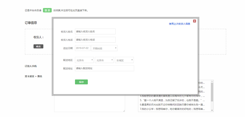 填寫(xiě)收貨人信息,賀卡留言,選擇支付方式。