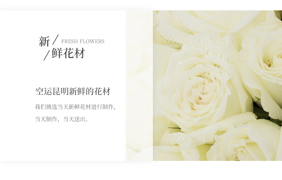 由于鮮花包扎的花藝師不同,可能在花束的形式和搭配上與圖片略有小的區(qū)別,但我們保證鮮花的主花材品種、新鮮程度、數(shù)量、顏色與說明一致,感謝您的理解。