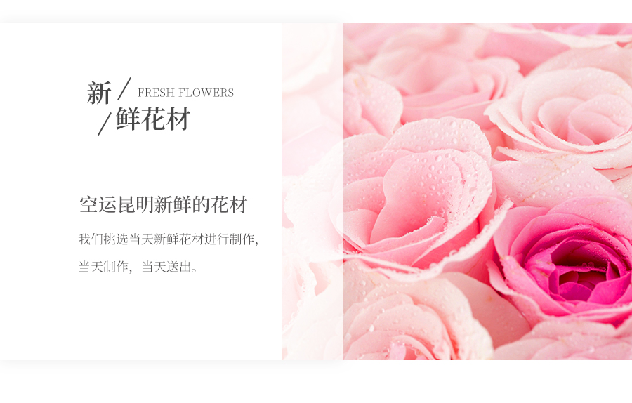 由于鮮花包扎的花藝師不同,可能在花束的形式和搭配上與圖片略有小的區(qū)別,但我們保證鮮花的主花材品種、新鮮程度、數(shù)量、顏色與說明一致,感謝您的理解。