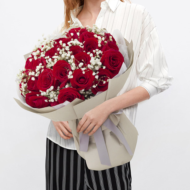 由于鮮花包扎的花藝師不同,可能在花束的形式和搭配上與圖片略有小的區(qū)別,但我們保證鮮花的主花材品種、新鮮程度、數量、顏色與說明一致,感謝您的理解。