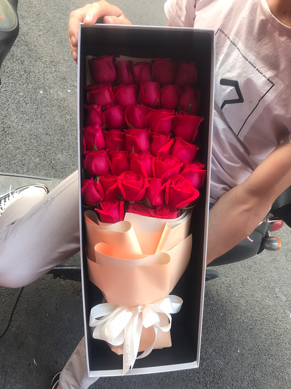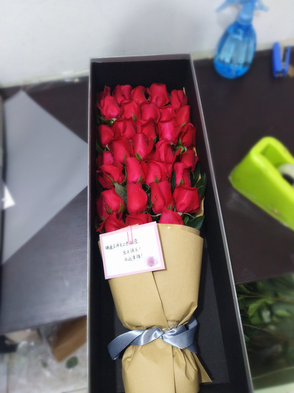 第二次購買,和圖片效果一模一樣,包裝紙的顏色特別好看,蝴蝶結(jié)也顯得很有檔次,最重要的價格真的很劃算,很滿意,買花以后只在你家了,贊贊贊~