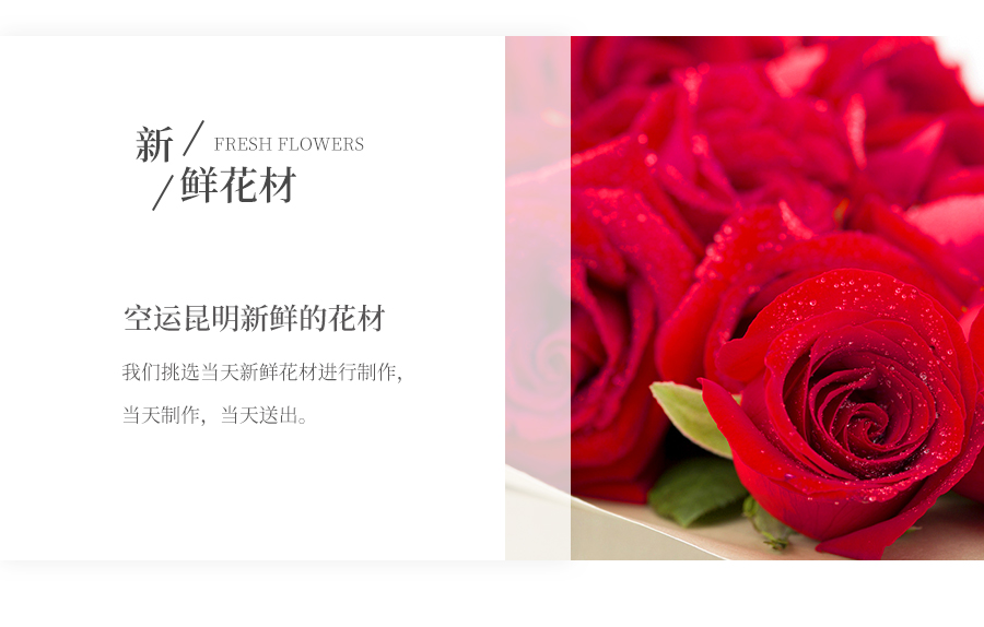 由于鮮花包扎的花藝師不同,可能在花束的形式和搭配上與圖片略有小的區(qū)別,但我們保證鮮花的主花材品種、新鮮程度、數(shù)量、顏色與說明一致,感謝您的理解。
