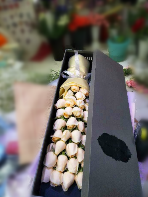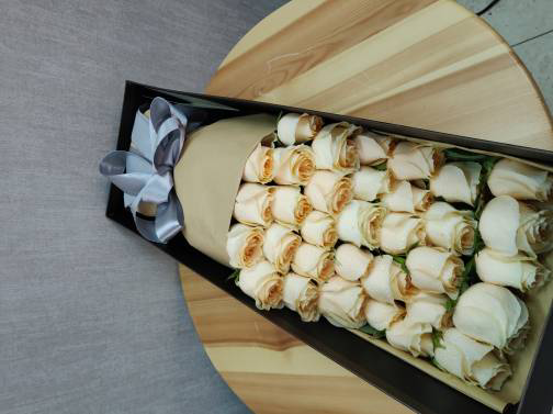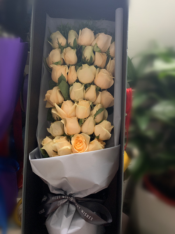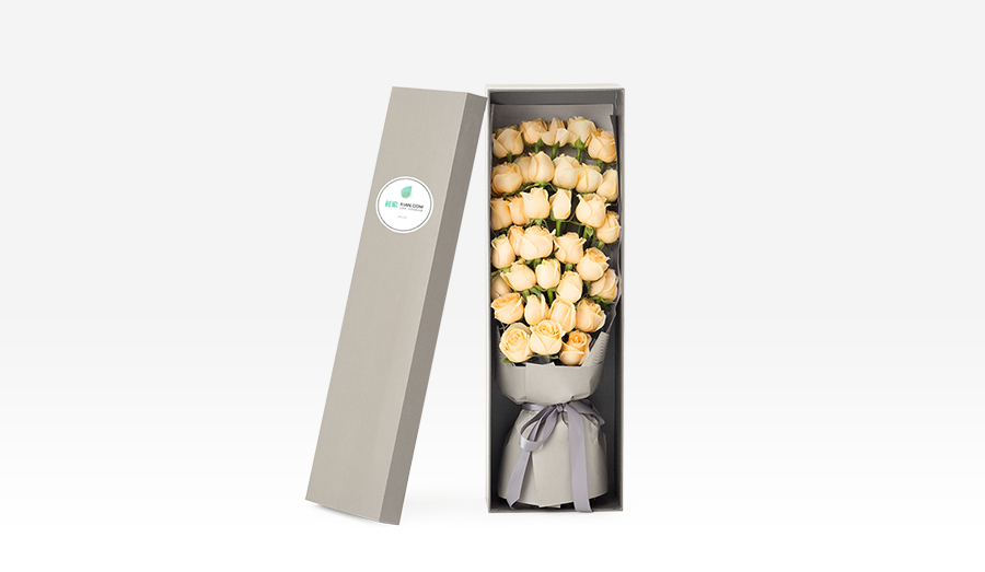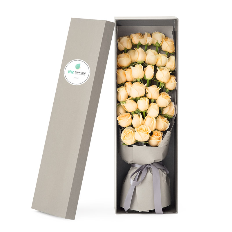 暖暖的美好·33枝香檳玫瑰槍炮禮盒