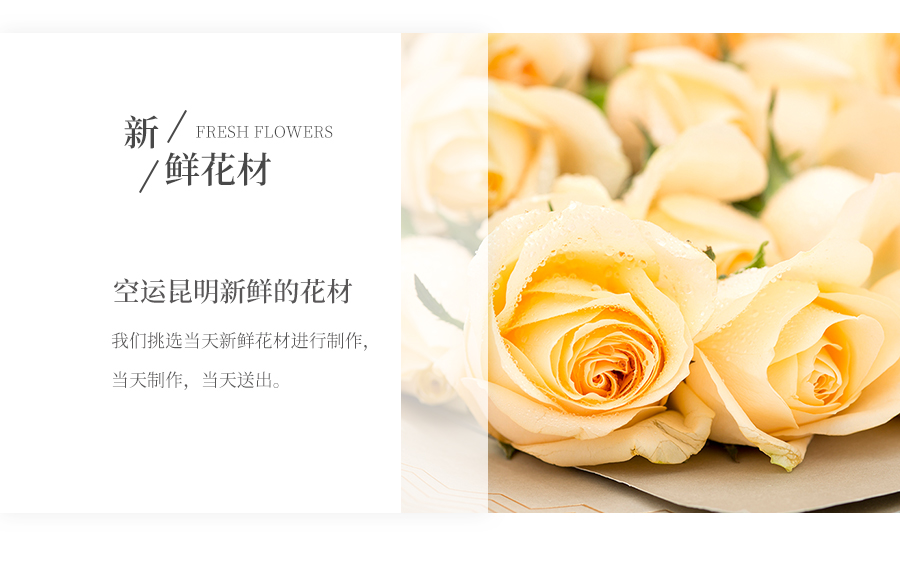 由于鮮花包扎的花藝師不同,可能在花束的形式和搭配上與圖片略有小的區(qū)別,但我們保證鮮花的主花材品種、新鮮程度、數(shù)量、顏色與說明一致,感謝您的理解。