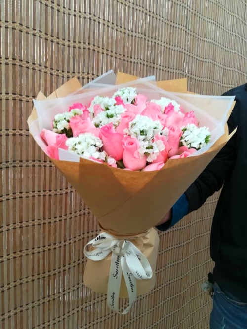 第一次從網(wǎng)上買,我家美妞兒很喜歡,花束好看呢,花也很新鮮,還挺香的,好評哇!