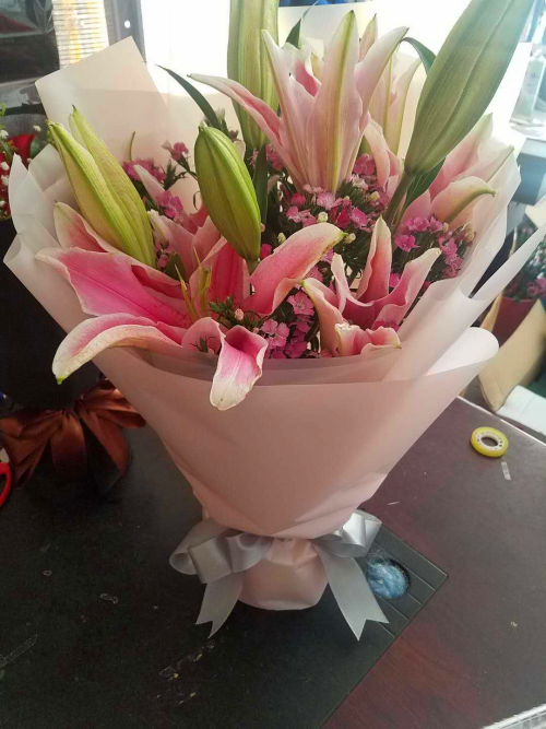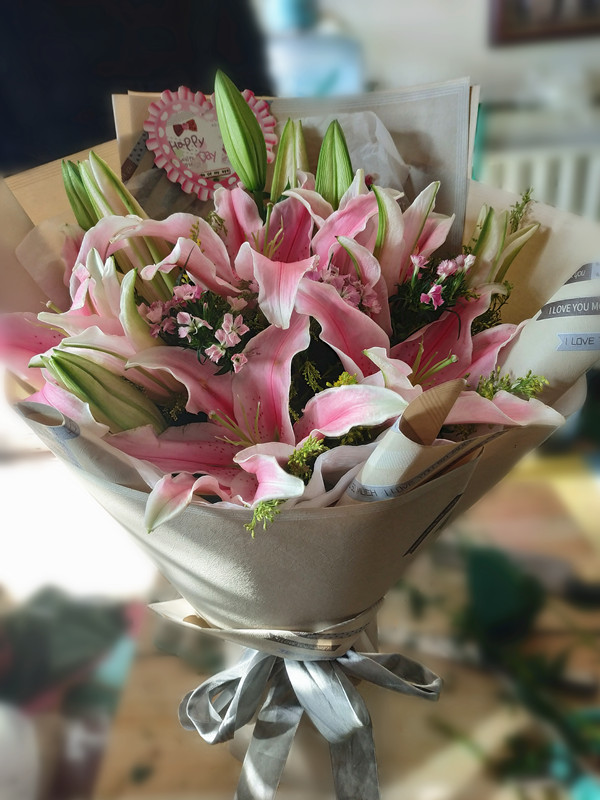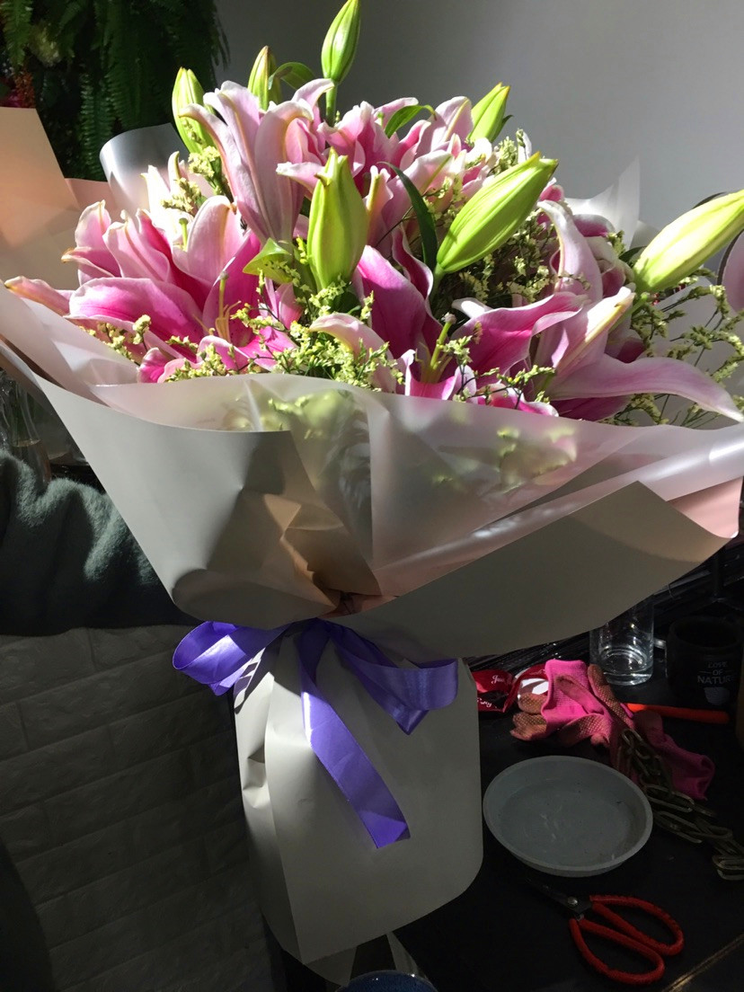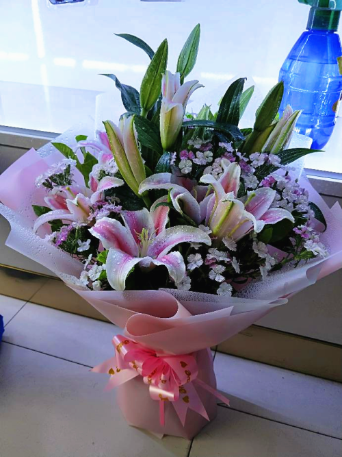 收到花束了,包裝的很好,特別喜歡??头B(tài)度特別好,因?yàn)橐蠼o我快些送到,幾乎沒有一點(diǎn)推遲,很快就送到了,很誠信的網(wǎng)站,好評(píng),很開心的一次購物。