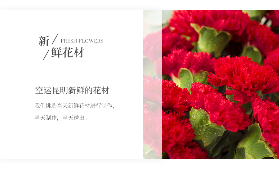由于鮮花包扎的花藝師不同,可能在花束的形式和搭配上與圖片略有小的區(qū)別,但我們保證鮮花的主花材品種、新鮮程度、數(shù)量、顏色與說明一致,感謝您的理解。