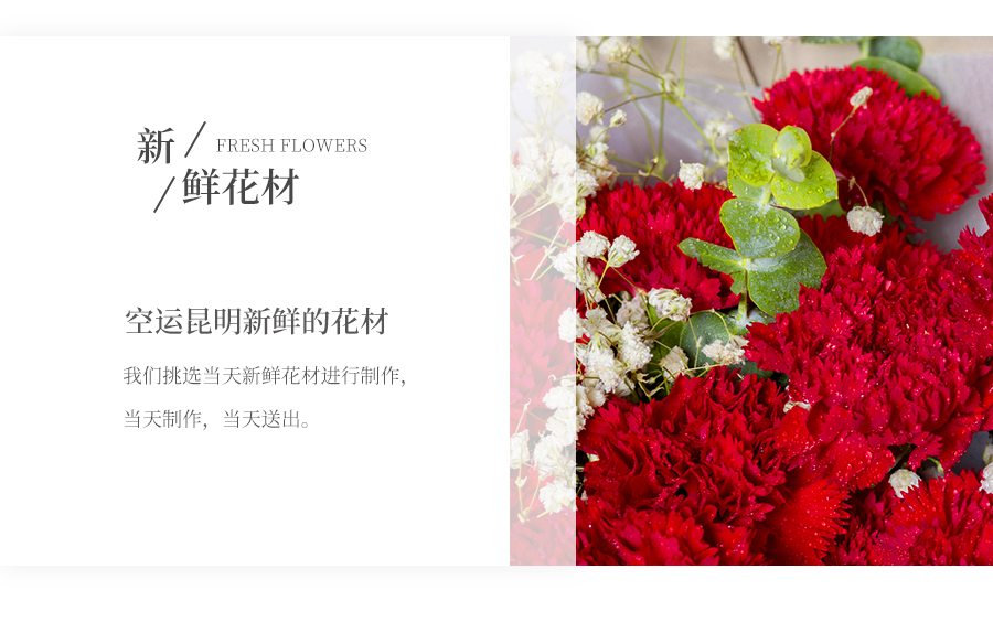 由于鮮花包扎的花藝師不同,可能在花束的形式和搭配上與圖片略有小的區(qū)別,但我們保證鮮花的主花材品種、新鮮程度、數(shù)量、顏色與說明一致,感謝您的理解。