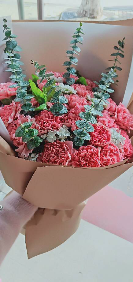 今天早上收到了,因為附近花店比較少,賣相不是很好,所以選擇在網(wǎng)上訂一束,還好來得及,花花看著很新鮮也很香,已經(jīng)迫不及待送給媽媽了