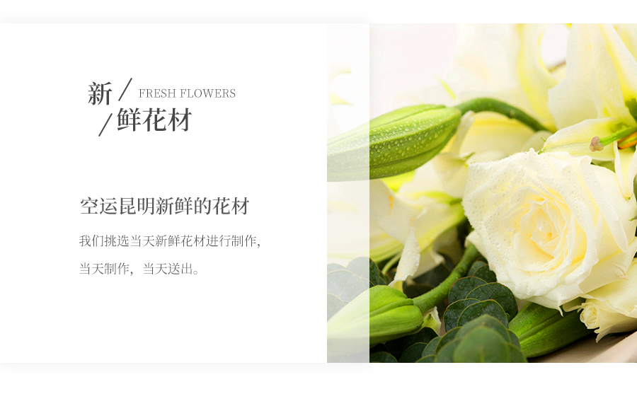 由于鮮花包扎的花藝師不同,可能在花束的形式和搭配上與圖片略有小的區(qū)別,但我們保證鮮花的主花材品種、新鮮程度、數(shù)量、顏色與說明一致,感謝您的理解。