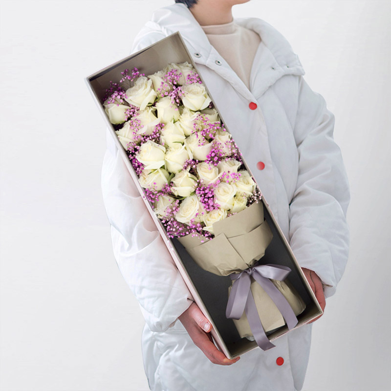 玫瑰真的很素啊,加一點粉色搭配起來別樣的小清新,哈哈哈,送人肯定要買禮盒的啦,朋友很喜歡的,說我怎么這么討人喜歡