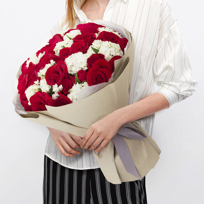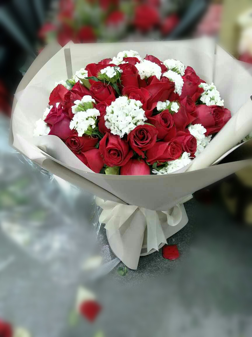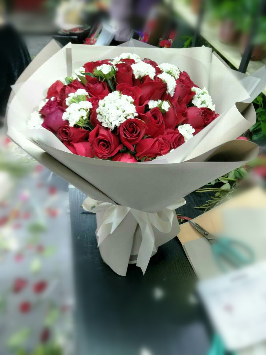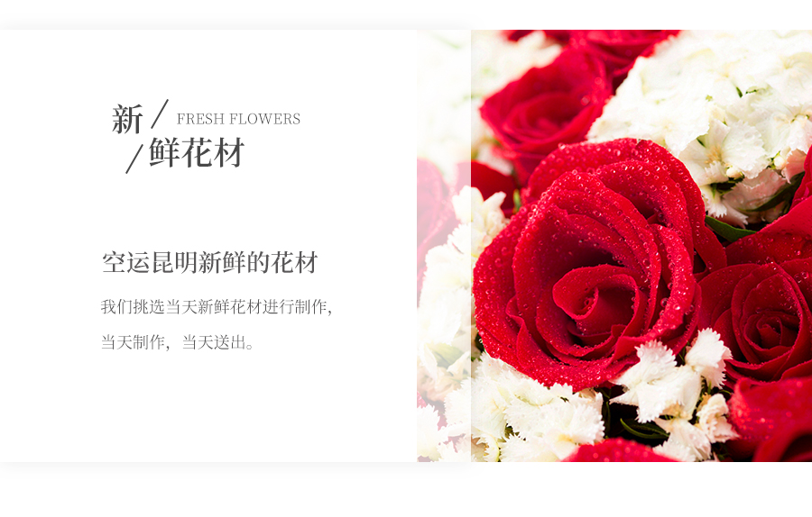 由于鮮花包扎的花藝師不同,可能在花束的形式和搭配上與圖片略有小的區(qū)別,但我們保證鮮花的主花材品種、新鮮程度、數(shù)量、顏色與說明一致,感謝您的理解。