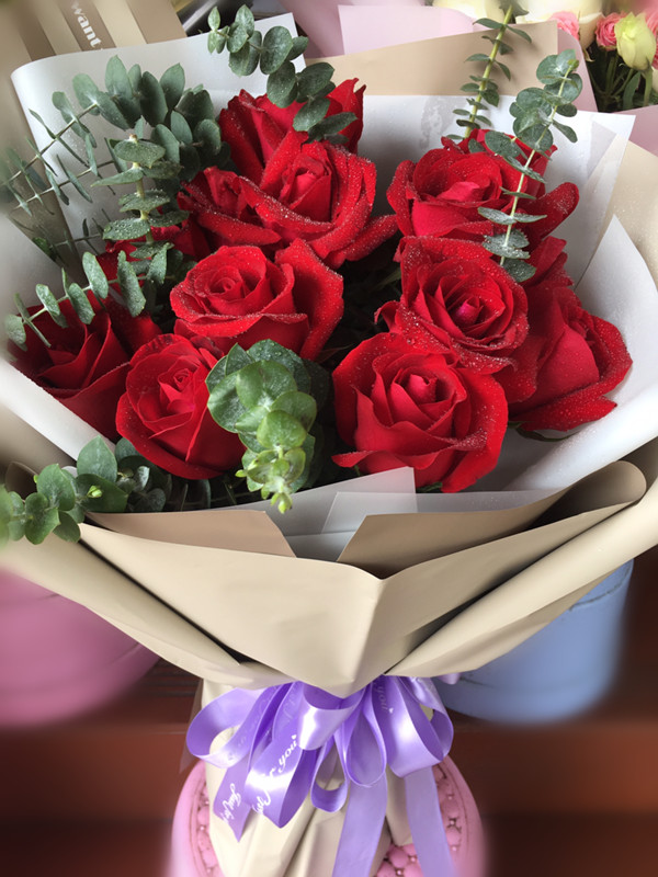 送來時花瓣上還噴了水,像露珠一樣晶瑩剔透,襯上花美極了,感謝