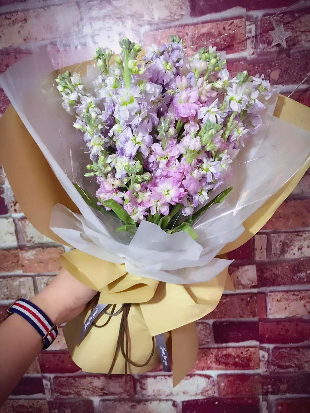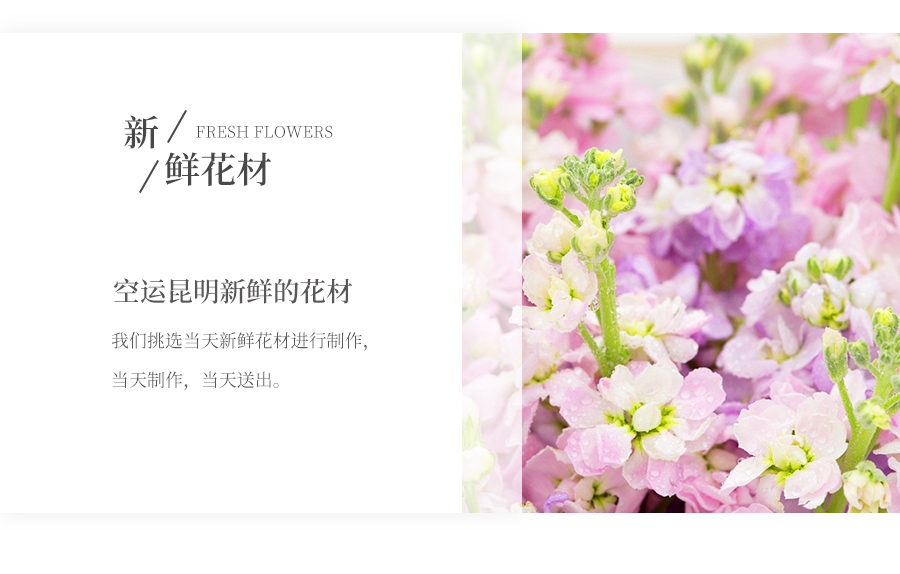 由于鮮花包扎的花藝師不同,可能在花束的形式和搭配上與圖片略有小的區(qū)別,但我們保證鮮花的主花材品種、新鮮程度、數(shù)量、顏色與說明一致,感謝您的理解。
