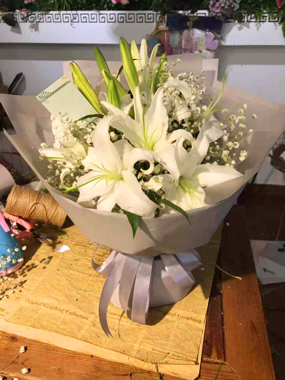 很新鮮的百合,花束很棒,特別要說下客服,服務(wù)非常好,不懂的都非常詳細的介紹了,以后訂花就在你家了!