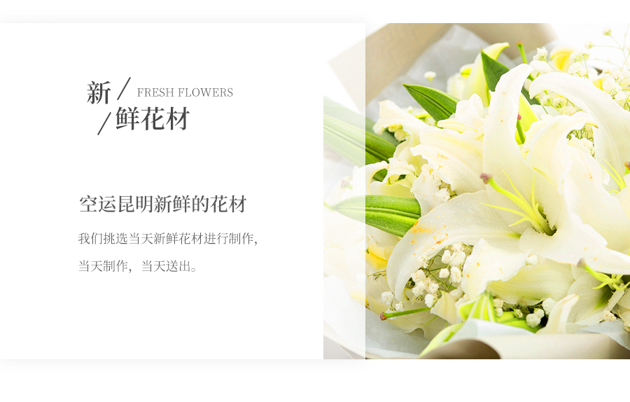 由于鮮花包扎的花藝師不同,可能在花束的形式和搭配上與圖片略有小的區(qū)別,但我們保證鮮花的主花材品種、新鮮程度、數(shù)量、顏色與說明一致,感謝您的理解。