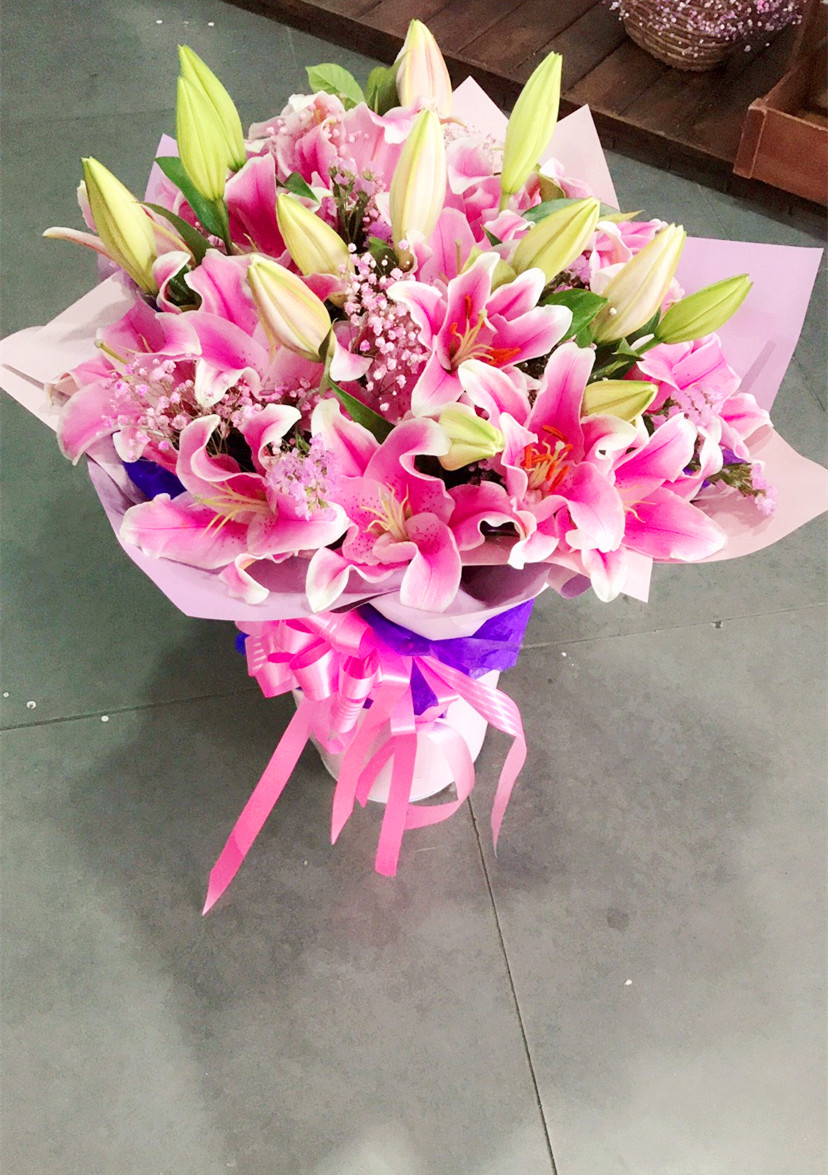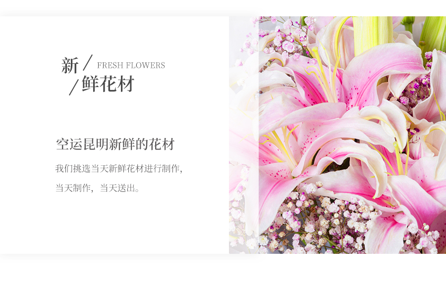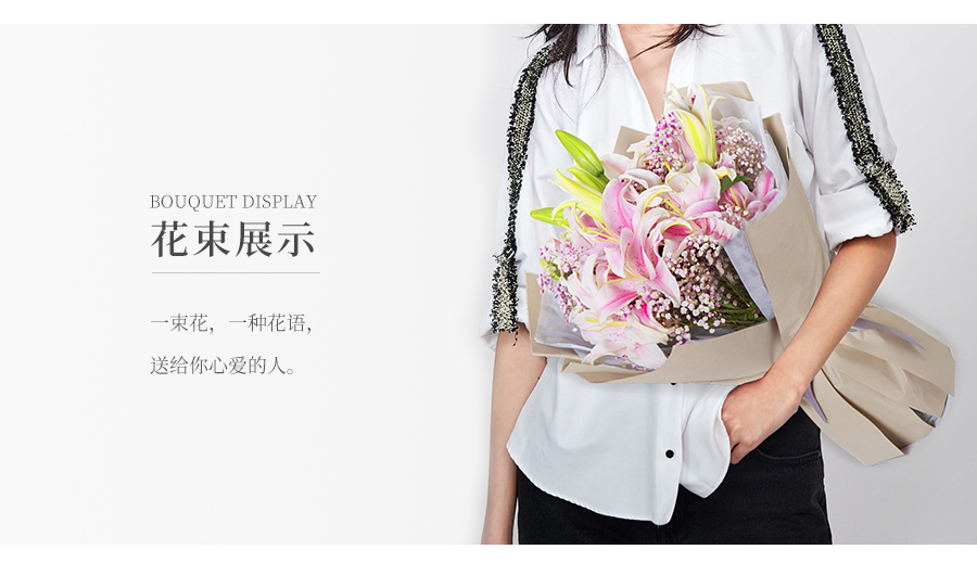由于鮮花包扎的花藝師不同,可能在花束的形式和搭配上與圖片略有小的區(qū)別,但我們保證鮮花的主花材品種、新鮮程度、數(shù)量、顏色與說明一致,感謝您的理解。