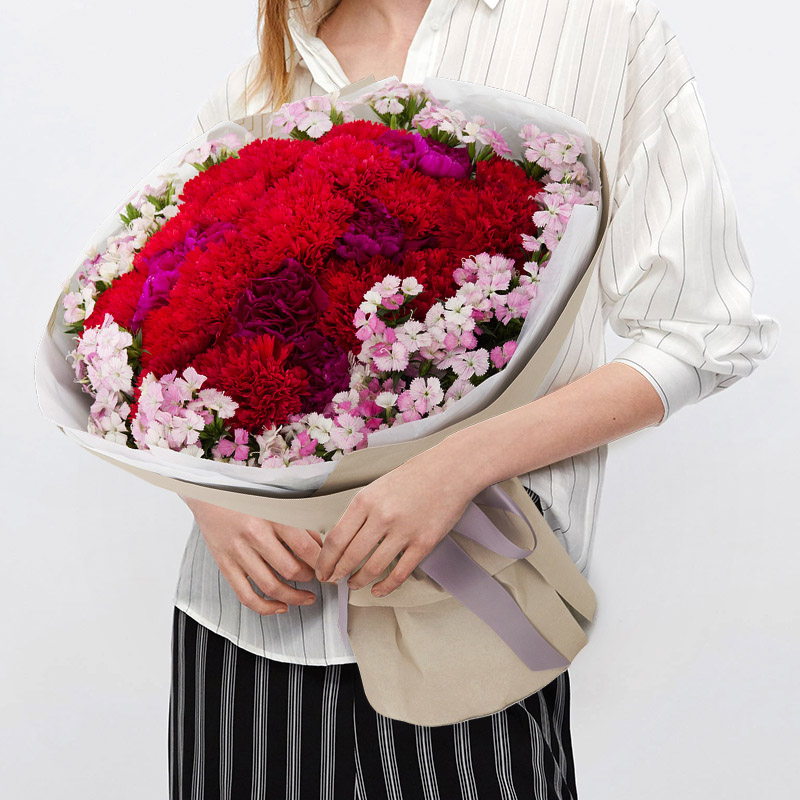 由于鮮花包扎的花藝師不同,可能在花束的形式和搭配上與圖片略有小的區(qū)別,但我們保證鮮花的主花材品種、新鮮程度、數(shù)量、顏色與說明一致,感謝您的理解。