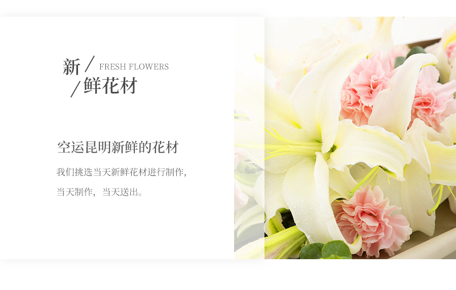 由于鮮花包扎的花藝師不同,可能在花束的形式和搭配上與圖片略有小的區(qū)別,但我們保證鮮花的主花材品種、新鮮程度、數量、顏色與說明一致,感謝您的理解。