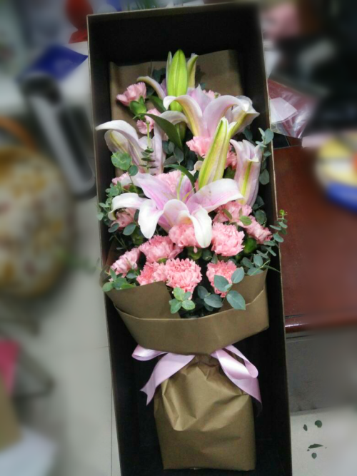 上午買的花下午兩點就收到了,花朵很新鮮,包裝的也很上檔次,配花都很精致,實物與圖片上一樣好看很喜歡,下次需要還會來你家訂購~