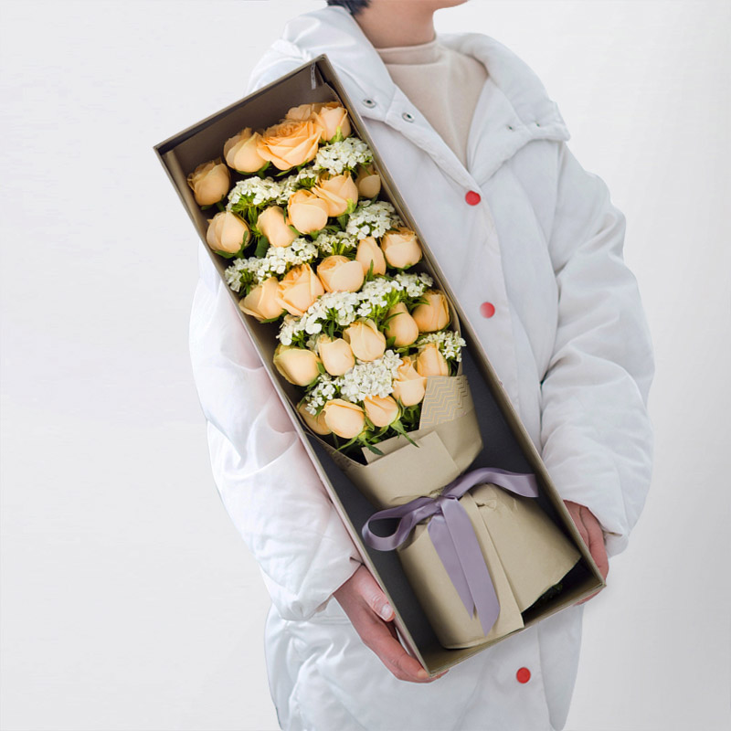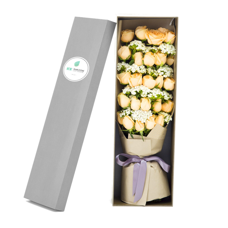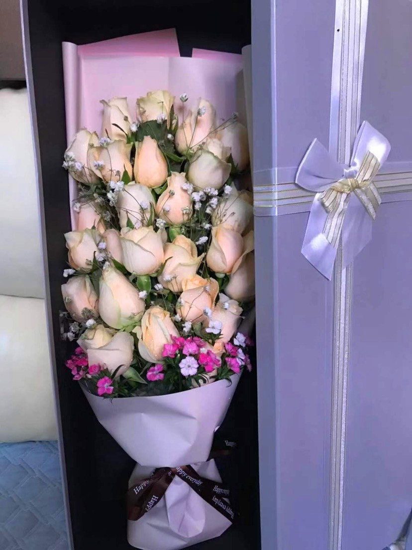 暖暖的美好·33枝香檳玫瑰槍炮禮盒