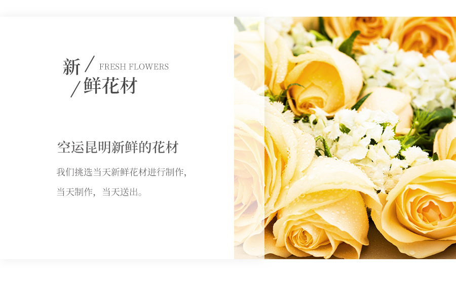 由于鮮花包扎的花藝師不同,可能在花束的形式和搭配上與圖片略有小的區(qū)別,但我們保證鮮花的主花材品種、新鮮程度、數(shù)量、顏色與說明一致,感謝您的理解。