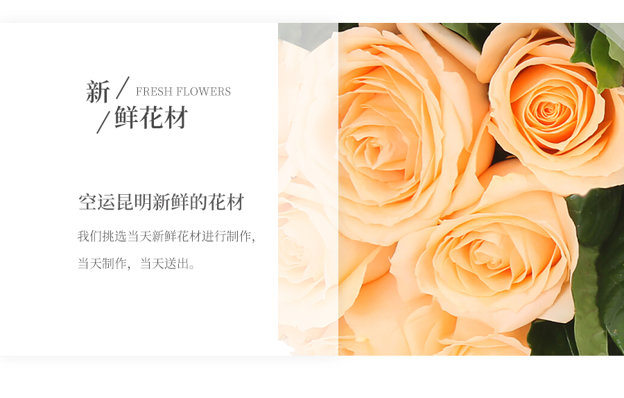 由于鮮花包扎的花藝師不同,可能在花束的形式和搭配上與圖片略有小的區(qū)別,但我們保證鮮花的主花材品種、新鮮程度、數(shù)量、顏色與說(shuō)明一致,感謝您的理解。