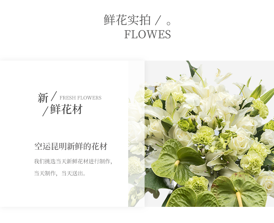 由于鮮花包扎的花藝師不同,可能在花束的形式和搭配上與圖片略有小的區(qū)別,但我們保證鮮花的主花材品種、新鮮程度、數(shù)量、顏色與說明一致,感謝您的理解。