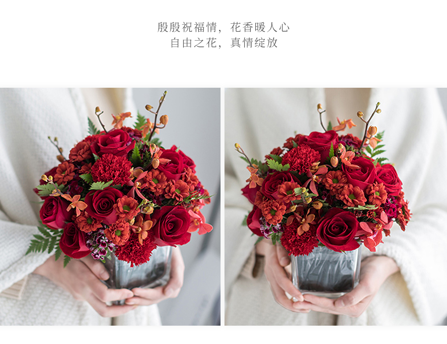 由于鮮花包扎的花藝師不同,可能在花束的形式和搭配上與圖片略有小的區(qū)別,但我們保證鮮花的主花材品種、新鮮程度、數(shù)量、顏色與說明一致,感謝您的理解。