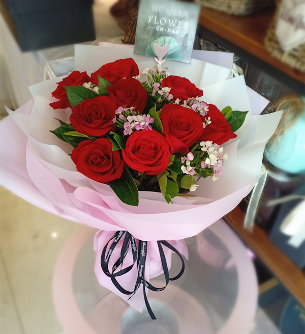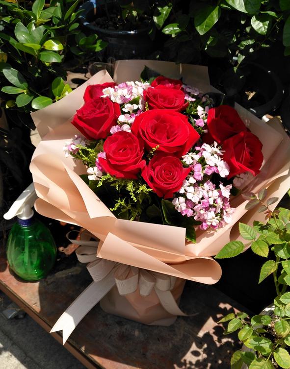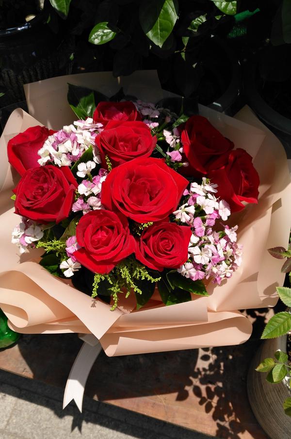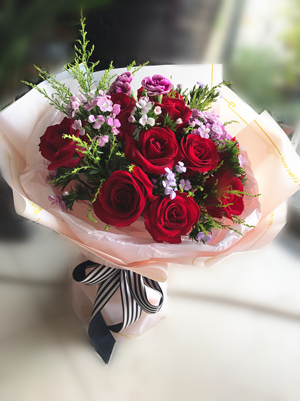 今生與你相伴·9枝紅玫瑰韓式花束