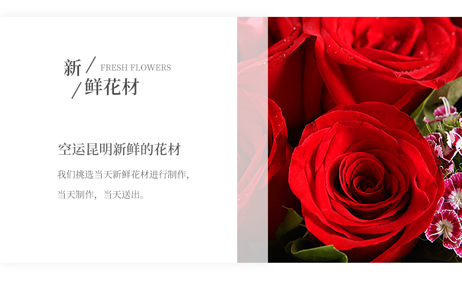 由于鮮花包扎的花藝師不同,可能在花束的形式和搭配上與圖片略有小的區(qū)別,但我們保證鮮花的主花材品種、新鮮程度、數(shù)量、顏色與說(shuō)明一致,感謝您的理解。