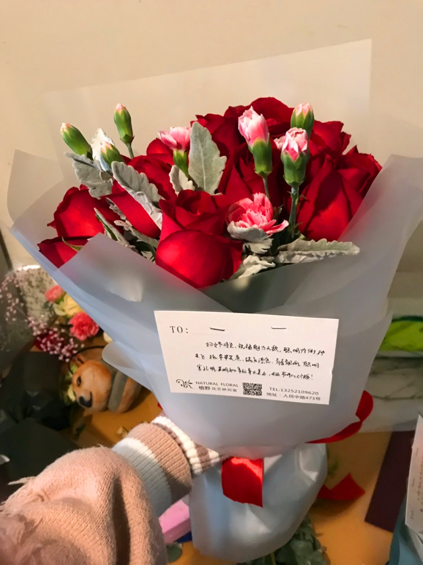 花花收到了,換了一下花材,非常喜歡!非常感謝快遞小哥哥送花過來。花花包裝得很嚴(yán)實仔細(xì),很認(rèn)真!很少女很夢幻的包裝。感動到哭。客服人也非常好,問問題很有耐心,也很仔細(xì)的確認(rèn)各種發(fā)貨細(xì)節(jié)。