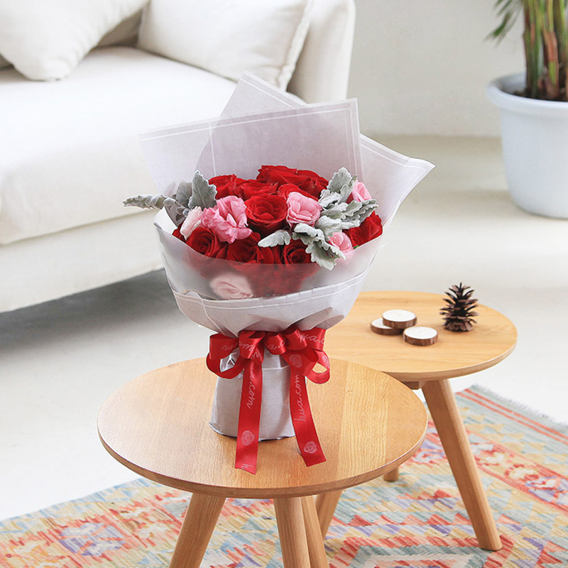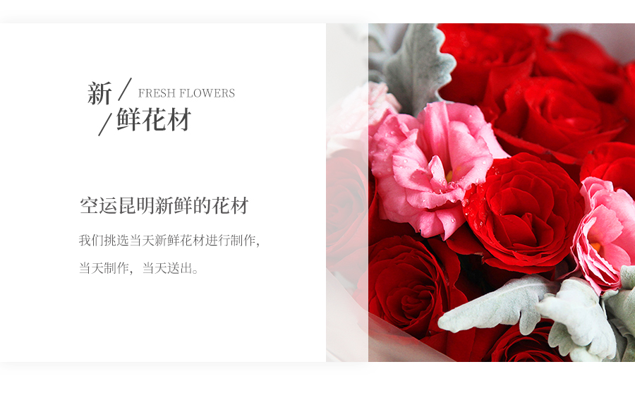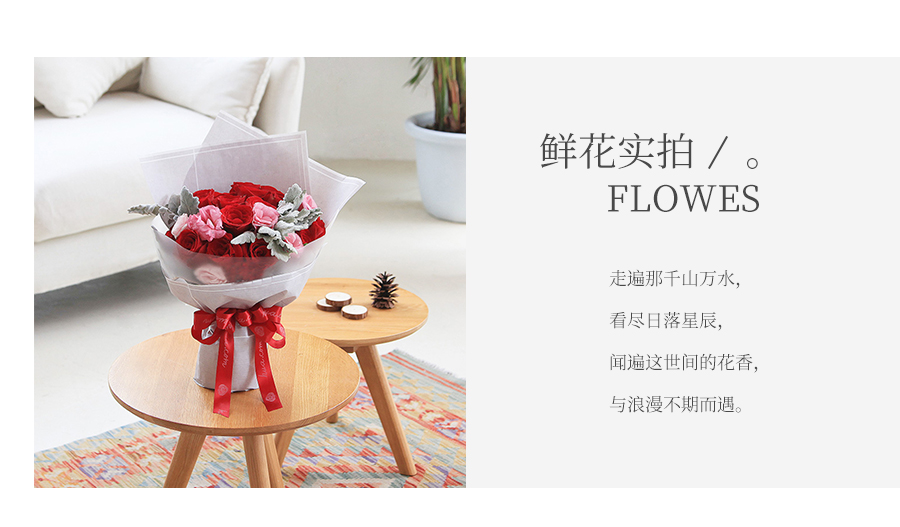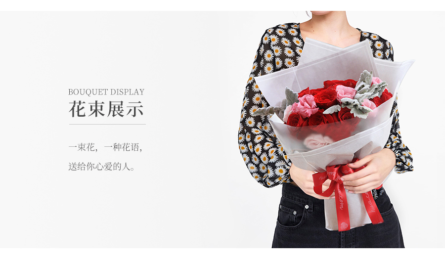由于鮮花包扎的花藝師不同,可能在花束的形式和搭配上與圖片略有小的區(qū)別,但我們保證鮮花的主花材品種、新鮮程度、數(shù)量、顏色與說明一致,感謝您的理解。