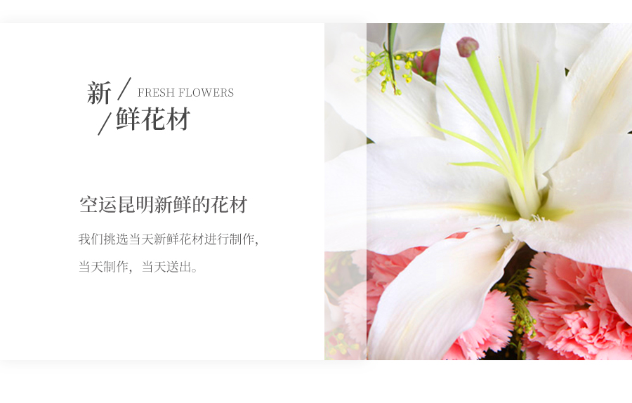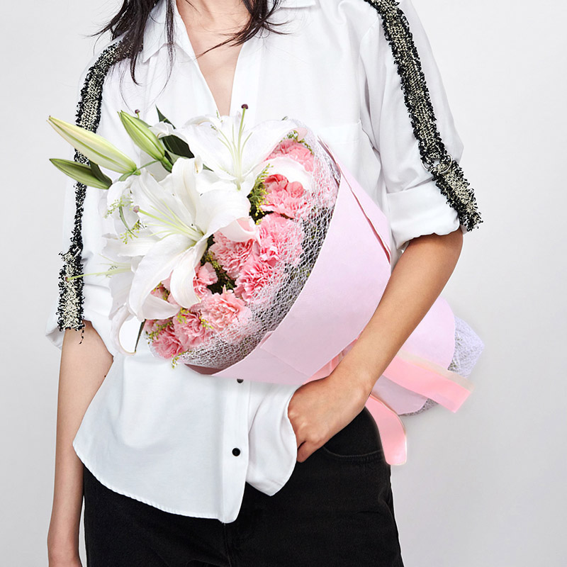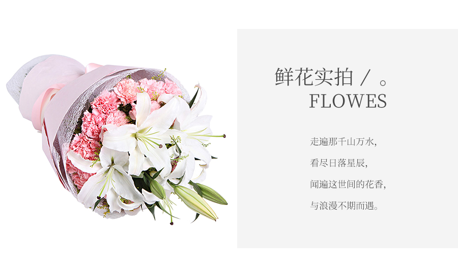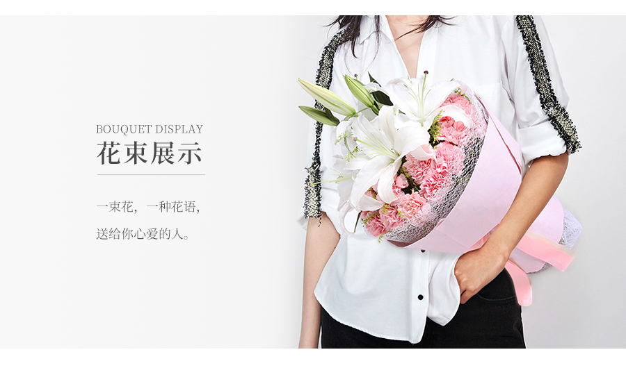 由于鮮花包扎的花藝師不同,可能在花束的形式和搭配上與圖片略有小的區(qū)別,但我們保證鮮花的主花材品種、新鮮程度、數(shù)量、顏色與說明一致,感謝您的理解。