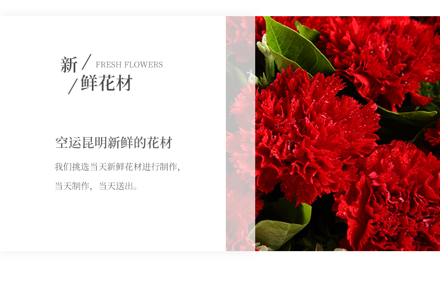 由于鮮花包扎的花藝師不同,可能在花束的形式和搭配上與圖片略有小的區(qū)別,但我們保證鮮花的主花材品種、新鮮程度、數(shù)量、顏色與說明一致,感謝您的理解。