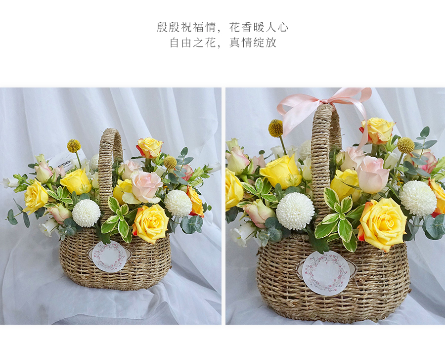 看了好多家花店,花的品種都千篇一律的,下午才找到這家,特別喜歡這款,聯(lián)系了客服,她很耐心,特別是插花的這個花籃,解決了花瓶的問題。