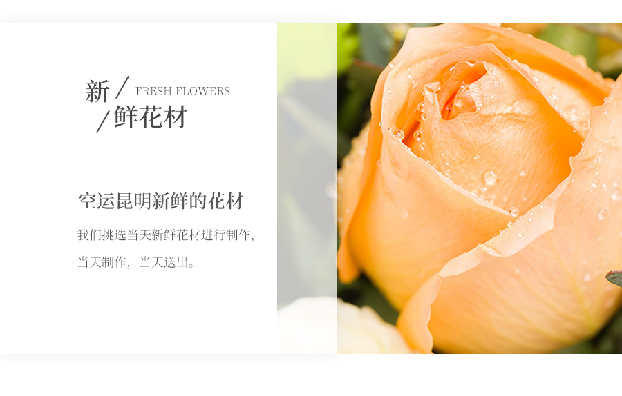 由于鮮花包扎的花藝師不同,可能在花束的形式和搭配上與圖片略有小的區(qū)別,但我們保證鮮花的主花材品種、新鮮程度、數(shù)量、顏色與說明一致,感謝您的理解。