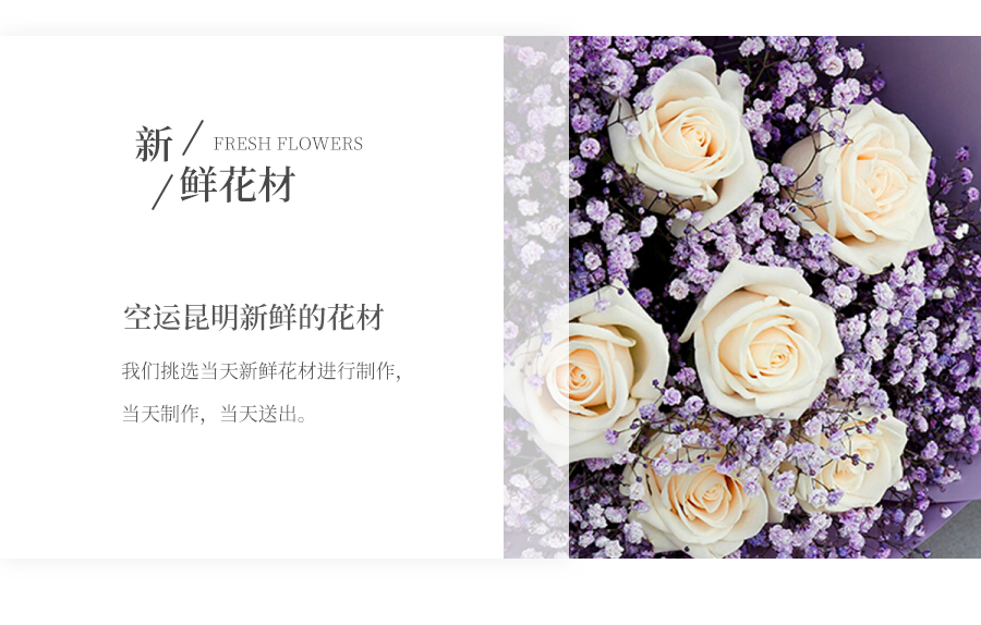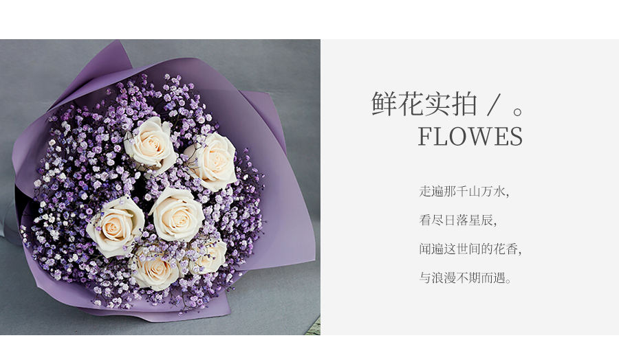 由于鮮花包扎的花藝師不同,可能在花束的形式和搭配上與圖片略有小的區(qū)別,但我們保證鮮花的主花材品種、新鮮程度、數(shù)量、顏色與說明一致,感謝您的理解。