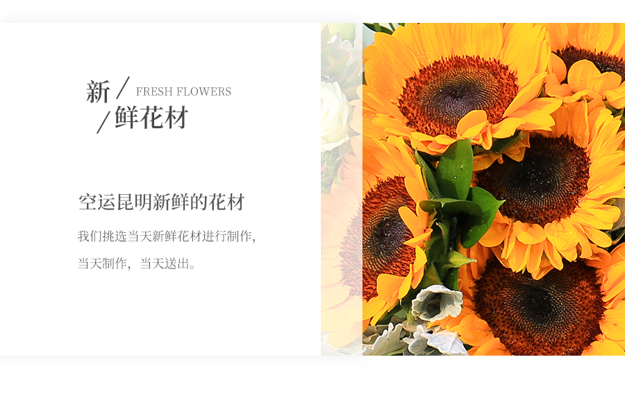 由于鮮花包扎的花藝師不同,可能在花束的形式和搭配上與圖片略有小的區(qū)別,但我們保證鮮花的主花材品種、新鮮程度、數(shù)量、顏色與說明一致,感謝您的理解。