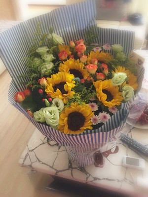 收到啦!媽媽特別喜歡 包裝顏色很特別 藍(lán)色條紋特別適合她 斟酌很久后選了特別的向日葵 寓意也特別好 這是我第一次送花給長輩 以后還會送給外婆外公哈哈 所以會回購啦 在此表揚(yáng)一下客服哈哈 真的是秒回 發(fā)貨也特別及時(shí) 甚至比我說的提前了些哈哈 總得來說是特別滿意的一次買花經(jīng)歷