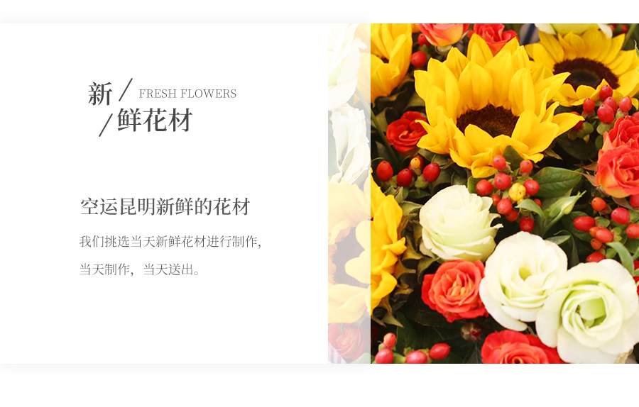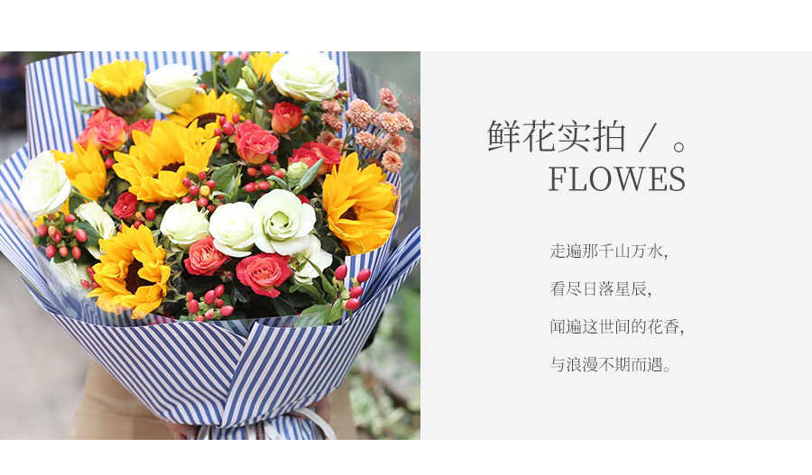 由于鮮花包扎的花藝師不同,可能在花束的形式和搭配上與圖片略有小的區(qū)別,但我們保證鮮花的主花材品種、新鮮程度、數(shù)量、顏色與說明一致,感謝您的理解。