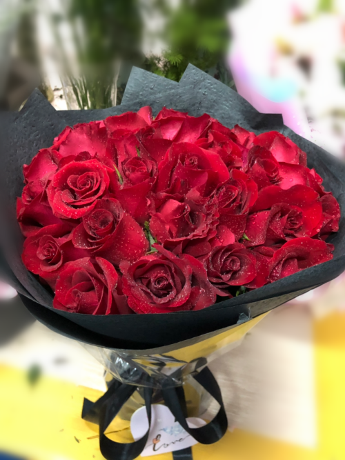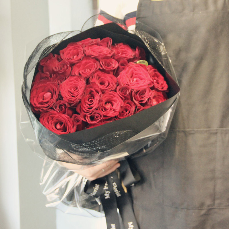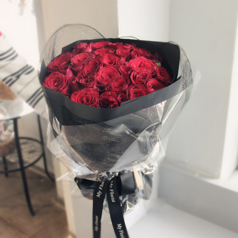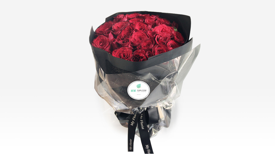 天長(zhǎng)地久·99枝黑紗紅玫瑰韓式花束