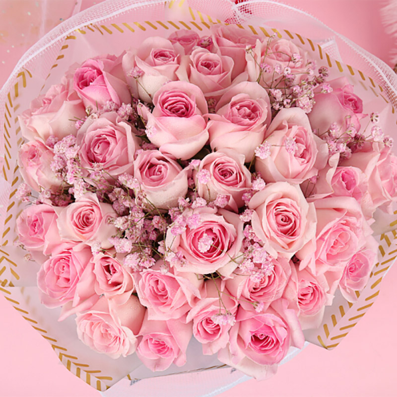 用愛守護(hù)你·33枝粉玫瑰韓式花束