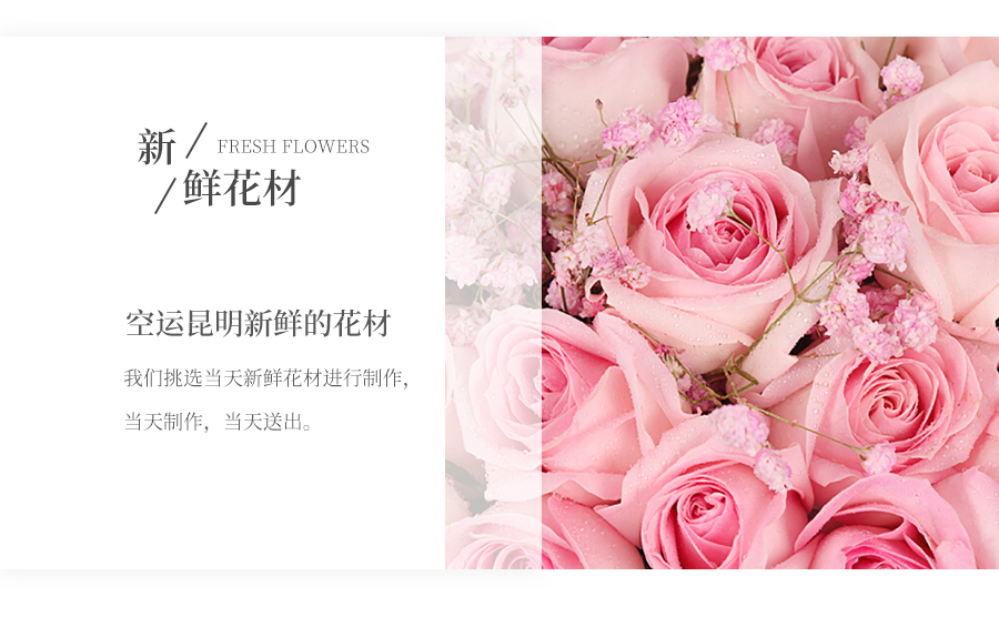 由于鮮花包扎的花藝師不同,可能在花束的形式和搭配上與圖片略有小的區(qū)別,但我們保證鮮花的主花材品種、新鮮程度、數(shù)量、顏色與說明一致,感謝您的理解。