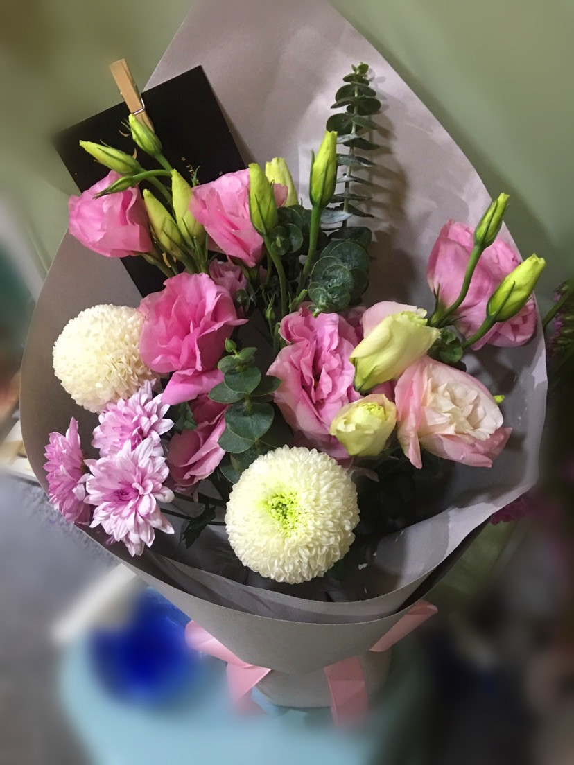打算送老婆的,超級(jí)好,隨處的小浪漫,等她下班給她一個(gè)驚喜,花束包裝好,乒乓菊完美